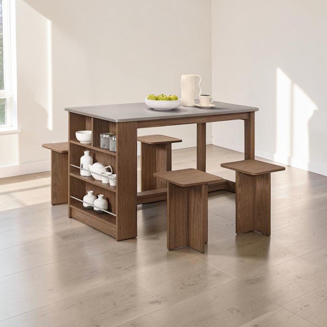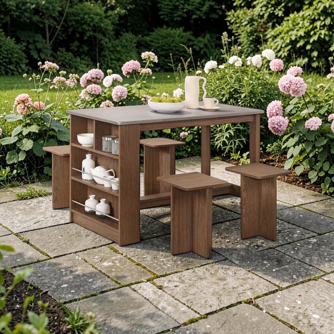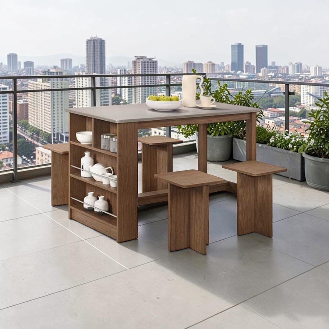 | 📦 Set Includes | 1 Dining Table + 4 Dining Stools |