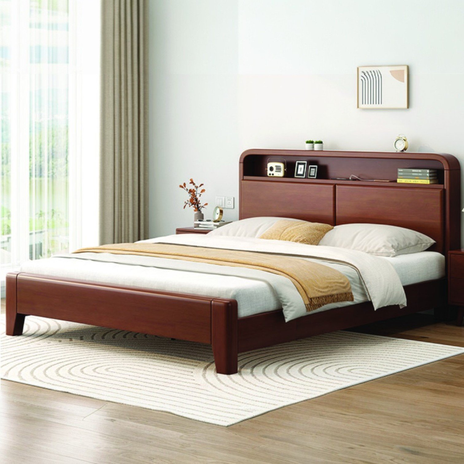 Elevate your bedroom with this premium solid wood bed frame, featuring a sleek modern design and built-in headboard storage for a clean, organized look. Crafted from high-quality wood, this bed offers durability and timeless style, available in Natural and Walnut finishes to complement any décor.